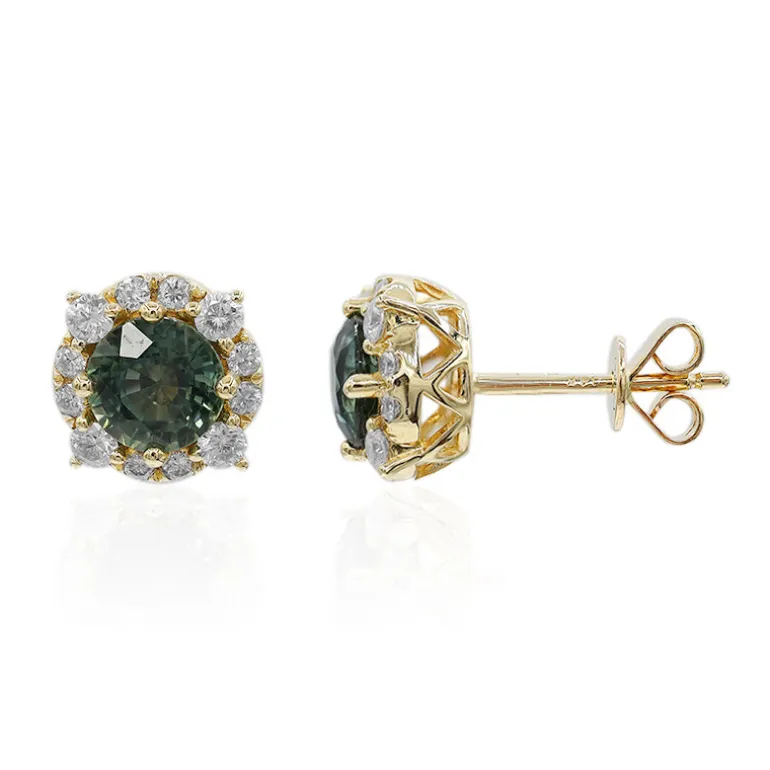 Entdecken Sie die Faszination dieser exquisiten petrolfarbenen Saphir-Ohrringe aus Madagaskar, gefasst in 14 Karat Gelbgold. Die mit schillernden Diamanten besetzten Ohrstecker vereinen auf elegante Weise Raffinesse mit leuchtenden Farben. Sie eignen sich perfekt für einen Abend oder einen besonderen Anlass und ergänzen sowohl formelle als auch schicke Outfits. Umfassen Sie zeitlose Eleganz mit diesen atemberaubenden Edelsteinen, die Luxus und Stil ausstrahlen.