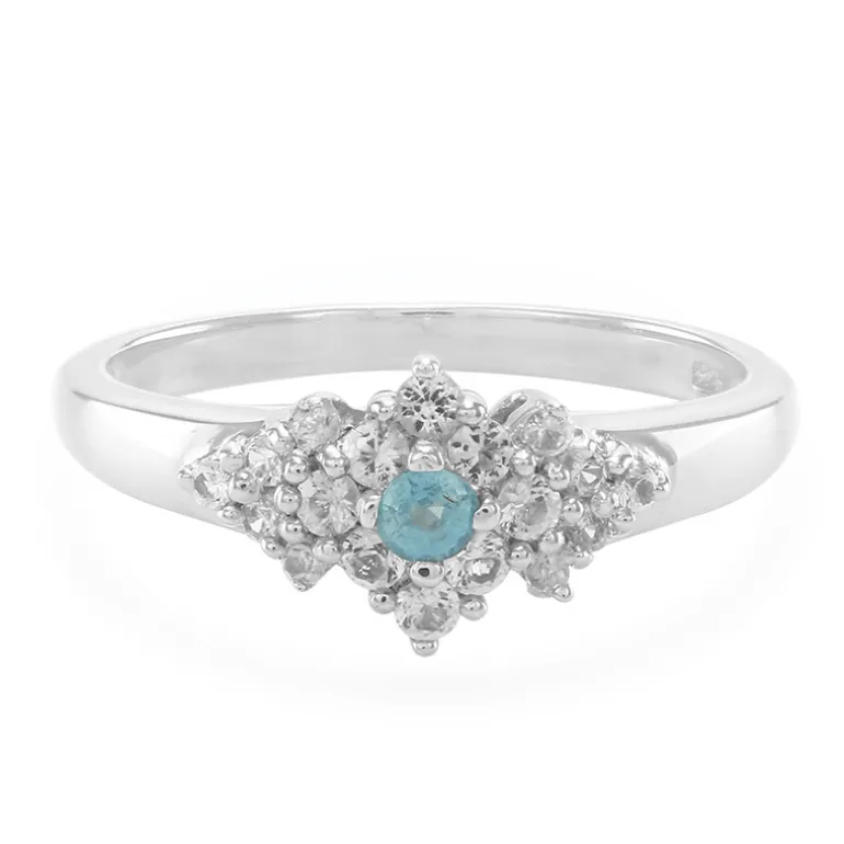 Indischer Pfau Kyanit & Weißer Topas Silber Ring