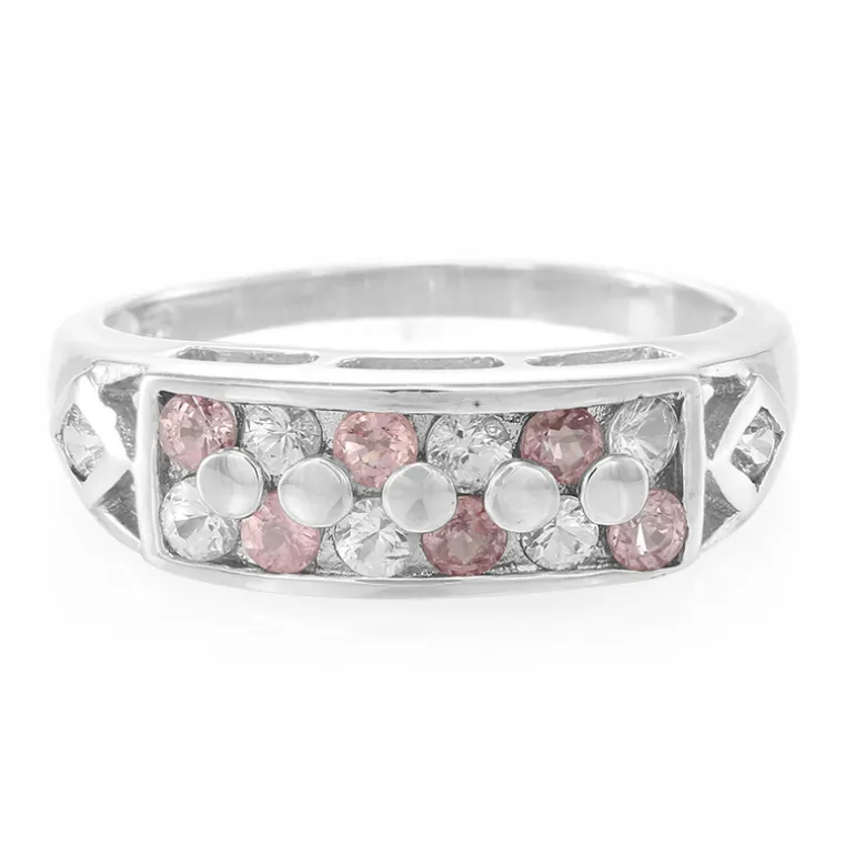 Entdecken Sie die Faszination dieses atemberaubenden Rings aus 925er Sterlingsilber mit einer harmonischen Mischung aus sechs rosa Saphiren von den Küsten Sri Lankas und acht funkelnden weißen Saphiren aus Madagaskar. Diese Edelsteine haben zusammen ein Gesamtkaratgewicht von 1,044 ct und wurden sorgfältig geschliffen, um ihren Glanz zu maximieren. Das moderne Design, das durch den sanften Farbton der rosafarbenen Saphire auf dem schlichten Silber hervorgehoben wird, ist ein vielseitiges Accessoire, das sich perfekt für den Tag und den Abend eignet. Peppen Sie Ihr Alltagsoutfit auf oder ergänzen Sie ein schickes Cocktailkleid mit diesem auffälligen Schmuckstück.