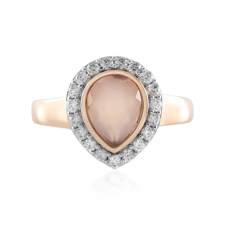 Setzen Sie Akzente mit diesem bezaubernden Ring aus rosévergoldetem 925er Sterlingsilber mit einem rosafarbenen Chalzedon von 1,17 Karat aus Indien, der in einer charmanten Tropfenform geschliffen ist. Umgeben von glitzernden Zirkonen von insgesamt 0,342 ct aus Kambodscha und gefasst in einem 22×19 mm Design, verleiht er jedem Ensemble einen Hauch von Eleganz. Er eignet sich perfekt für Abendveranstaltungen und formelle Anlässe und kommt am besten zur Geltung, wenn er mit anspruchsvoller Kleidung kombiniert wird.