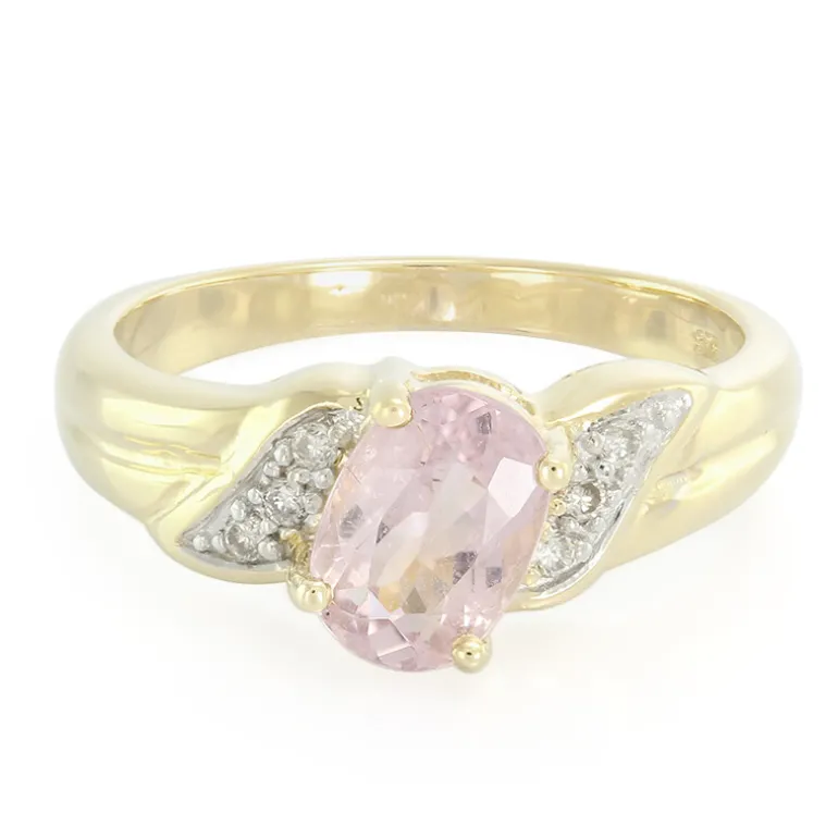 Entdecken Sie die Eleganz unseres Mosambik-Kupfer-Turmalinrings mit einem ovalen Edelstein von 1,07 Karat, der in rosafarbenen Tönen strahlt und von der luxuriösen Wärme von 9-karätigem Gelbgold umhüllt wird. Dieser Ring ist mit sechs funkelnden Diamanten von insgesamt 0,072 Karat besetzt und strahlt Raffinesse aus. Sein einzigartiges Design und sein brillanter Goldton machen ihn zum perfekten Begleiter für die Abendgarderobe oder besondere Anlässe und versprechen, jedem Ensemble einen Hauch von Glamour zu verleihen.
