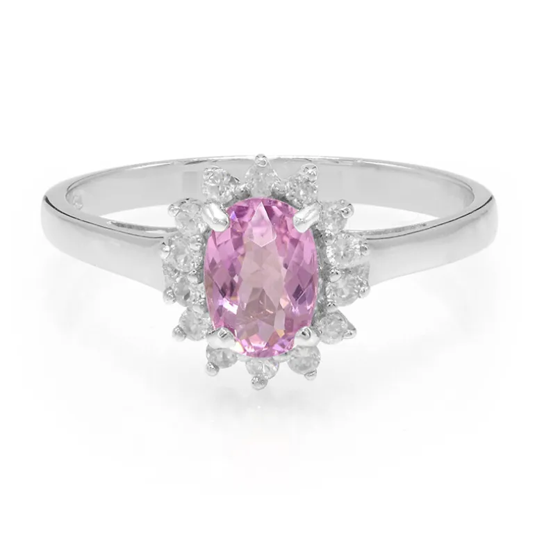 Lassen Sie sich von der subtilen Eleganz dieses Rings aus Sterlingsilber verzaubern, der mit einem rosa Kupferturmalin im Ovalschliff von 0,74 Karat aus Mosambik besetzt ist, der durch schimmernde Zirkone im Brillantschliff von insgesamt 0,333 Karat aus Kambodscha zart ergänzt wird. Dieser Ring wurde fachmännisch mit Platin auf 925er Sterlingsilber gefertigt und glänzt mit einem Gesamtgewicht von 1,073 ct. Sein zartes Rosa verleiht jedem Outfit einen Hauch von Romantik und macht ihn zur idealen Wahl sowohl für besondere Anlässe als auch für den eleganten Alltag.