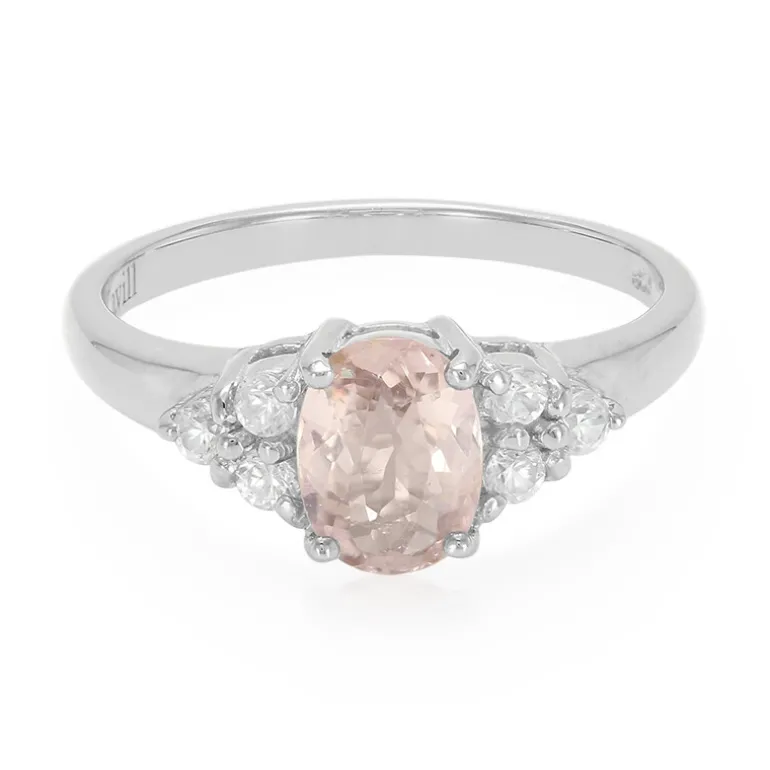 Entdecken Sie den zarten Charme dieses Rings aus Sterlingsilber, der mit einem exquisiten mosambikanischen Kupferturmalin im Ovalschliff von 0,9 Karat besetzt ist, der einen sanften rosa Farbton aufweist. Sechs funkelnde Zirkone aus Kambodscha mit einem Gesamtgewicht von 0,327 ct verleihen diesem 1,95 g schweren, platinierten Schmuckstück einen Hauch von Eleganz. Er ist ideal, um jedem Ensemble einen Hauch von Raffinesse zu verleihen, und ein unverzichtbares Accessoire für die Momente, die nach einem raffinierten Touch verlangen.