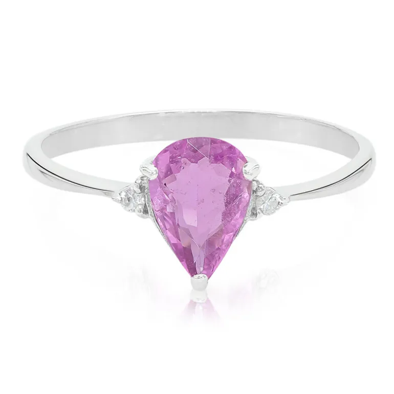 Entdecken Sie die Eleganz dieses exquisiten Rings mit rosa Kupferturmalin. Der Stein im Birnenschliff aus Mosambik wird durch Zirkone aus Kambodscha ergänzt und ist aus platiniertem 925er Sterlingsilber gefertigt. Mit einem Gesamtgewicht von 0,883 ct ist er perfekt, um jedem Outfit einen Hauch von Raffinesse zu verleihen. Ideal für besondere Anlässe oder die Eleganz des Alltags.