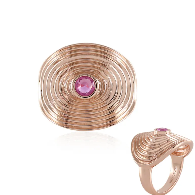 Dieser auffällige Ring besticht durch einen rosafarbenen Saphir aus Madagaskar, der in der Mitte von konzentrischen Kreisen liegt. Der Ring ist aus 925er Sterlingsilber mit einer glänzenden Rosé-Vergoldung gefertigt und wiegt etwa 5,11 Gramm. Der Edelstein, ein runder Schliff mit einem Gewicht von 0,27 Karat, sitzt prominent auf dem 21×20 mm großen Ring und dient als atemberaubender Blickpunkt. Sein einzigartiges spiralförmiges Design macht ihn zum Gesprächsstoff bei jeder Veranstaltung. Er eignet sich sowohl für die elegante Tages- als auch für die Abendgarderobe und ist ein beeindruckender Blickfang an Ihrem Finger.