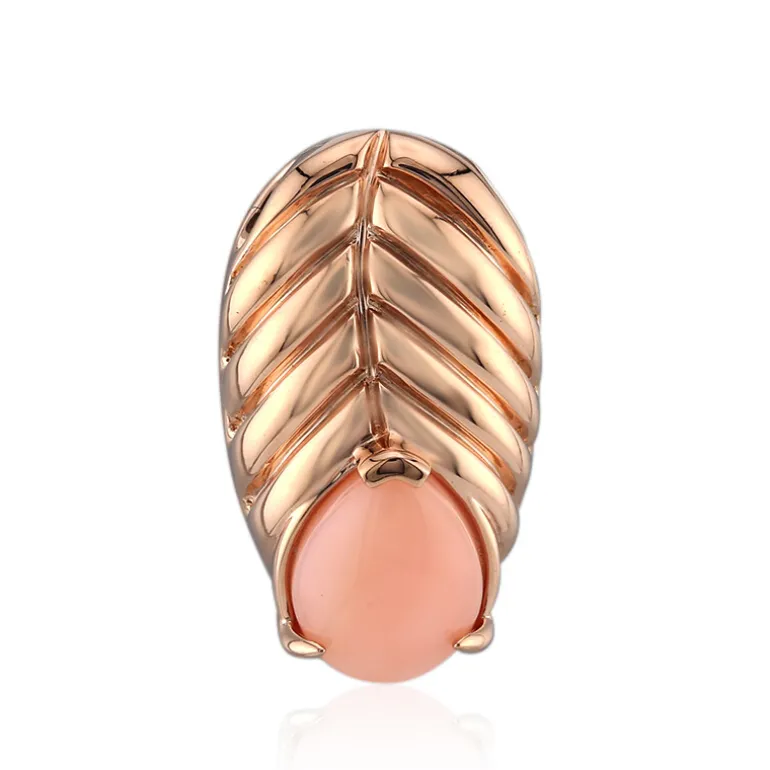 Entdecken Sie die Wärme und Eleganz dieses Anhängers aus rosé-vergoldetem Sterlingsilber, der mit einem zarten rosa Opal von 1,74 Karat aus Peru besetzt ist. Der tropfenförmige Opal in Cabochonform mit einer Größe von ca. 10×8 mm befindet sich an der Basis eines blattähnlichen Designs, das einen Hauch von naturinspiriertem Charme versprüht. Dieser Anhänger eignet sich perfekt, um Ihrem Outfit einen Hauch von Farbe zu verleihen, und lässt sich problemlos von der Anmut des Tages in die Raffinesse des Abends verwandeln.