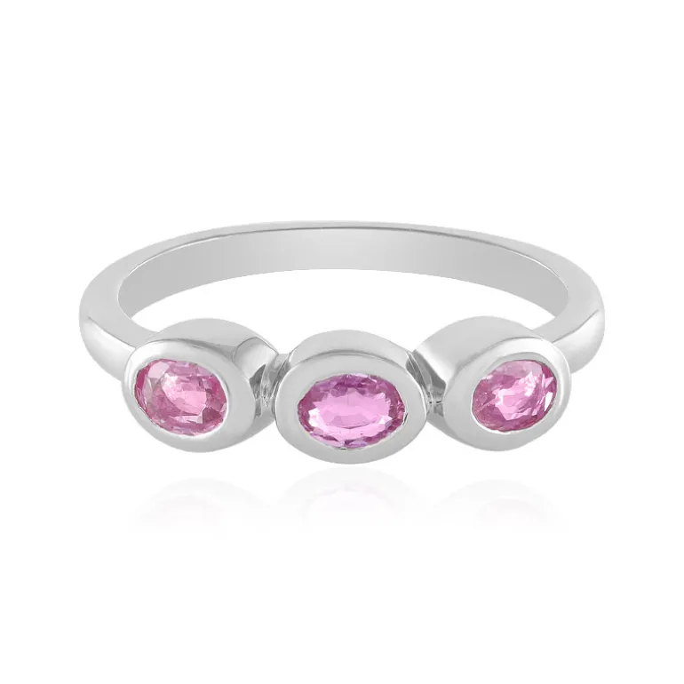 Entdecken Sie die Eleganz dieses exquisiten Rings aus rosa Saphiren, der mit drei schillernden Saphiren aus Madagaskar besetzt ist. Der Ring ist aus platiniertem 925er Sterlingsilber gefertigt und bietet mit seinen ovalen Steinen im Brillantschliff einen modernen Touch. Er eignet sich perfekt, um jedem Outfit einen Farbtupfer zu verleihen und ist ideal für die Abendgarderobe oder besondere Anlässe. Peppen Sie Ihre Schmucksammlung mit diesem faszinierenden Design auf.