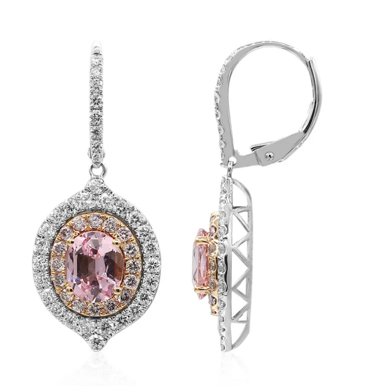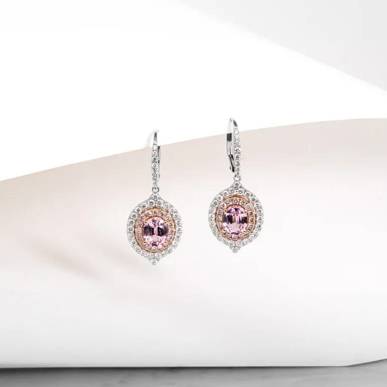 Schmücken Sie Ihre Ohren mit der Anziehungskraft dieser prächtigen Ohrringe aus 18 Karat Rosé- und Weißgold. Sie sind mit seltenen rosafarbenen Spinellen aus Myanmar von insgesamt 2,42 Karat besetzt und von einem doppelten Halo aus rosafarbenen und weißen Diamanten umgeben, die weitere 1,445 Karat beitragen. Die oval geschliffenen und brillanten runden Diamanten sorgen für ein unvergleichliches Funkeln. Diese Ohrringe eignen sich sowohl für zwanglose Brunchs als auch für formelle Anlässe und sorgen für Gesprächsstoff.