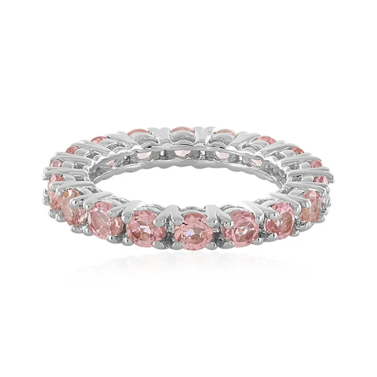 Erfreuen Sie sich an der Pracht dieses strahlenden Rings mit rosa Turmalin aus Madagaskar. Dieses Schmuckstück aus 925er Sterlingsilber ist mit achtzehn Edelsteinen im Rundschliff mit insgesamt mindestens 2,907 Karat besetzt und strahlt mit seiner Platinbeschichtung Eleganz aus. Der zarte rosa Farbton, eingefasst in ein harmonisches Banddesign, macht es zu einer zeitlosen Ergänzung für jede Sammlung. Dieser Ring ist in den Größen 16 bis 21 erhältlich und eignet sich perfekt, um der Alltagskleidung einen Hauch von Raffinesse zu verleihen oder ein Abendensemble zu verschönern, so dass er jeder Trägerin passt. Machen Sie ihn zu Ihrem unverwechselbaren Accessoire oder zu einem geschätzten Geschenk für jemand Besonderen.