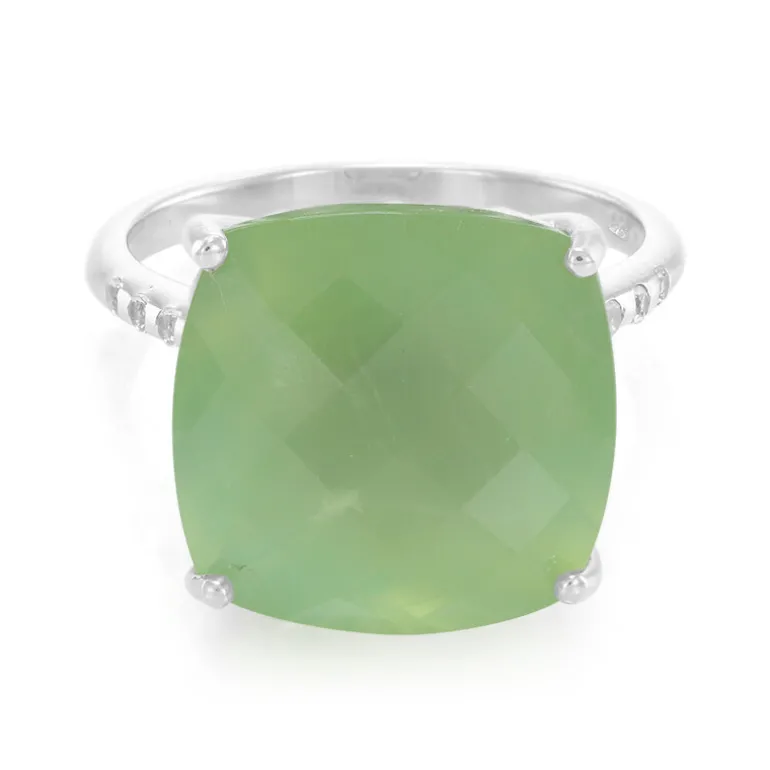 Australischer Prehnit Cushion Silber Ring, 9,58ct