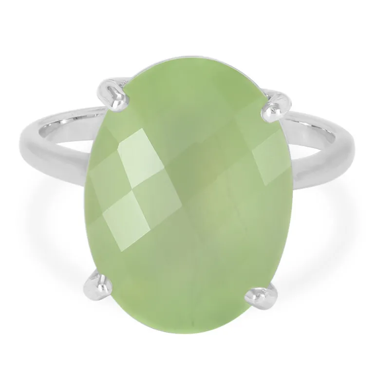Entdecken Sie die Faszination dieses schicken australischen Prehnit-Silberrings. Der atemberaubende Prehnit im ovalen Schliff von 9,05 Karat mit Schachbrettfacettierung ist in glänzendes 925er Sterlingsilber gefasst. Er eignet sich perfekt, um jedem Outfit einen Hauch von Eleganz zu verleihen, vom Freizeitlook bis zur Abendgarderobe. Die sanften Grüntöne machen ihn zu einem vielseitigen Schmuckstück für jede Gelegenheit, das sowohl Schlichtheit als auch Raffinesse verkörpert.
