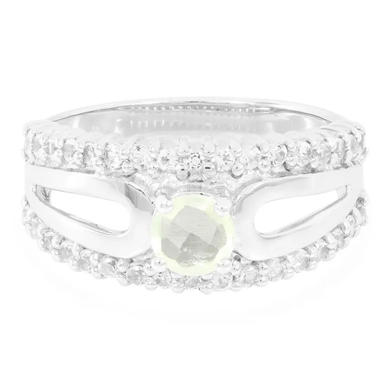 Australischer Prehnit & Weißer Topas Sterling Silber Ring
