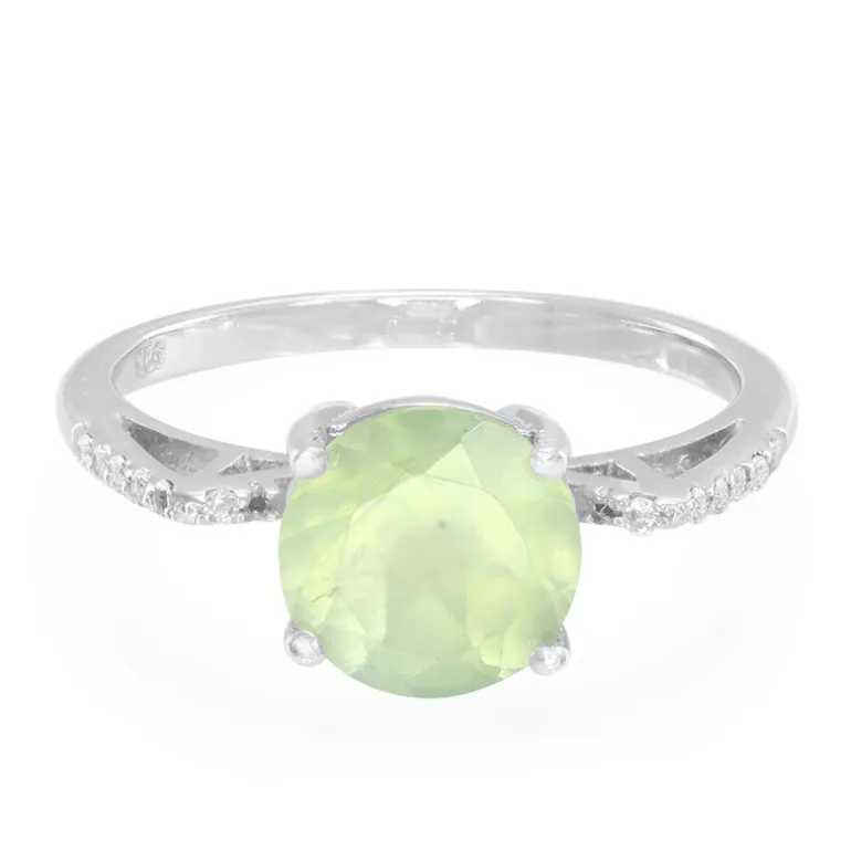 Entdecken Sie die einzigartige Anziehungskraft dieses Rings aus australischem Prehnit, gekrönt von einem 1,68 Karat schweren, rund geschliffenen Mittelstück, das in sanften Grüntönen erstrahlt. Umgeben von funkelnden weißen Topas-Akzenten aus Brasilien, funkelt dieser Ring mit Raffinesse. Der aus 925er Sterlingsilber gefertigte Ring wiegt nur 1,82 g und bietet einen angenehmen Tragekomfort für die Eleganz des Alltags. Als vielseitiges Accessoire ist er ein idealer Begleiter für ein legeres Tagesoutfit oder ein charmanter Akzent für die Abendgarderobe.