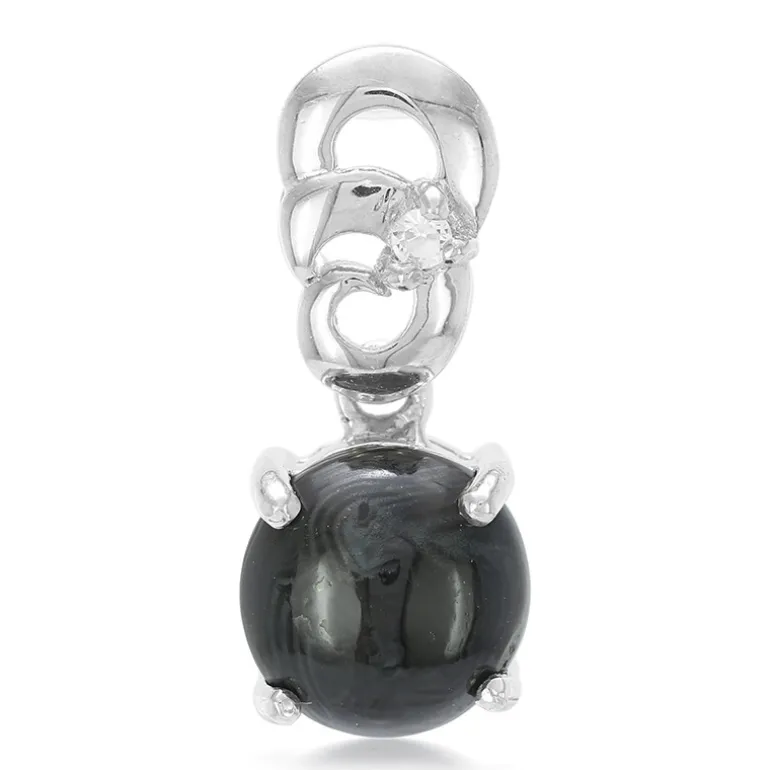 Entdecken Sie die Eleganz dieses Psilomelane-Anhängers mit einem fesselnden runden Cabochon von 3,91 Karat aus den USA. Akzentuiert durch einen zarten weißen Topas aus Brasilien, verkörpert dieses Stück Raffinesse. Er ist in 925er Sterlingsilber gefasst und eignet sich sowohl für legere als auch für formelle Anlässe. Kombinieren Sie ihn mit Ihren Lieblingsoutfits für einen Hauch von zeitloser Anmut.