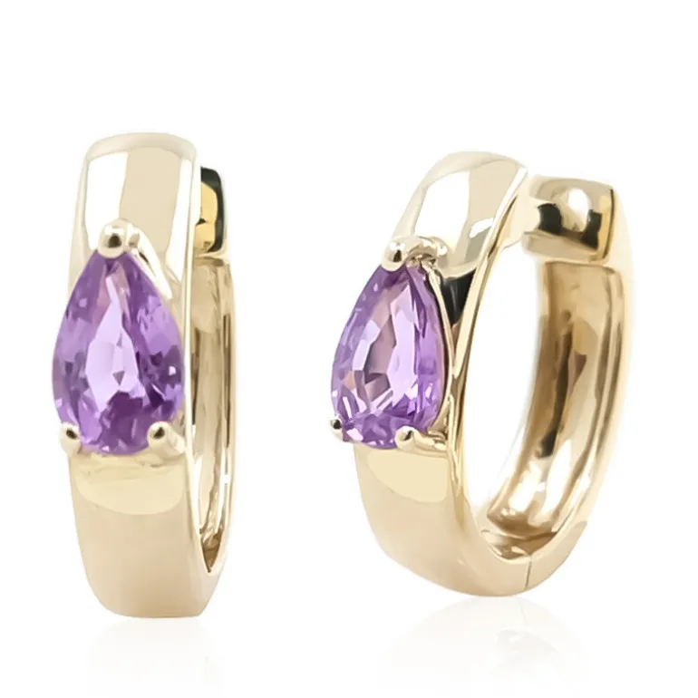 Entdecken Sie die Faszination der Ceylon Purple Sapphire Earrings, ein atemberaubendes Accessoire, das Charme und Raffinesse ausstrahlt. Diese eleganten Ohrringe aus 9 Karat Gelbgold sind mit zwei Saphiren im Tropfenschliff von insgesamt 0,396 Karat besetzt, die aus den berühmten Minen Sri Lankas stammen. Der leuchtende violette Farbton bildet einen faszinierenden Kontrast zum warmen Schimmer des Goldes und verleiht den Ohrringen eine luxuriöse Ausstrahlung, die zu jedem Anlass passt. Kombinieren Sie diese exquisiten Ohrringe mit Abendkleidern, um ihnen einen Hauch von Glamour zu verleihen, oder mit legeren Outfits für einen raffinierten Farbakzent.