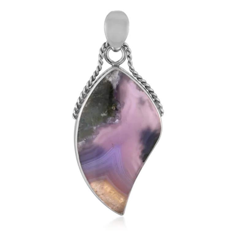 Entdecken Sie die Magie der indonesischen Kunst mit diesem 27-karätigen Anhänger aus violettem Chalzedon, der von dem mythischen Barong inspiriert ist. Der Anhänger aus hochwertigem 925er Sterlingsilber mit Platin-Finish zeigt die einzigartige Bänderung des Edelsteins in einem aufwendigen Fantasieschliff. Mit seinen Maßen von 35×20 mm ist er ein Statement der Opulenz. Egal, ob Sie sich für ein kulturelles Ereignis herausputzen oder ein schickes Abend-Outfit aufwerten, dieser Anhänger wird für Gesprächsstoff sorgen.