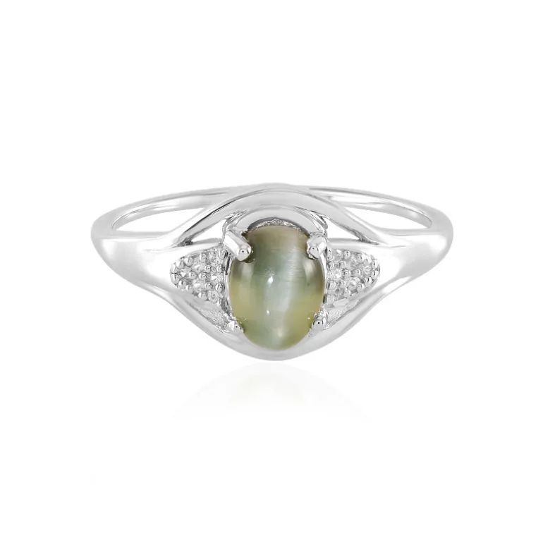 Entdecken Sie die fesselnde Anziehungskraft dieses eleganten Rings aus Sterlingsilber, der einen faszinierenden ovalen Cabochon aus brasilianischem Katzenaugenquarz mit einem Gewicht von 1,458 Karat präsentiert. Das weiche, leuchtende Band, das sich über den Edelstein zieht, verleiht dem Schmuckstück eine bezaubernde Dimension. Zwölf kambodschanische Zirkone im Rundschliff mit einem Gesamtgewicht von 0,099 Karat vervollständigen diesen Ring und sorgen für ein feines Gleichgewicht zwischen Subtilität und Funkeln. Er passt zu jedem Anlass und ist sowohl für den Tag als auch für den Abend geeignet und somit eine vielseitige Ergänzung Ihrer Schmucksammlung.