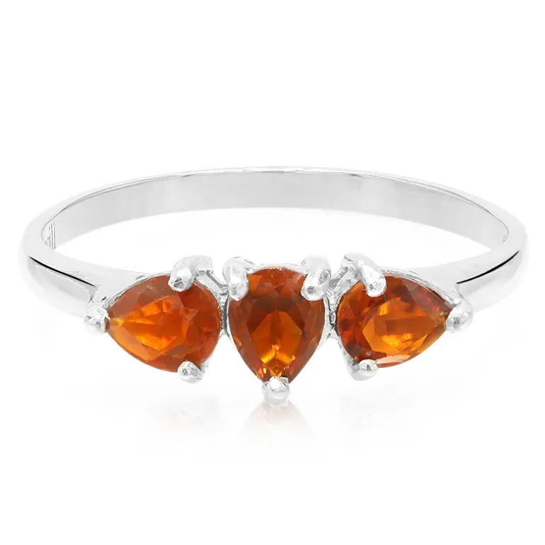 Entdecken Sie die feurige Anziehungskraft dieses schicken 925er Silberrings mit mexikanischem Feueropal aus Queretaro. Er präsentiert drei lebhafte Feueropale im Tropfenschliff aus Mexiko, die elegant in ein feines platiniertes Sterlingsilberband gefasst sind. Mit einem Gesamtgewicht von 0,5 Karat und einer sorgfältigen Verarbeitung, die die einzigartige Brillanz des Opals zur Geltung bringt, ist dieser Ring ein Zeugnis für den Reichtum der Kunstfertigkeit der Natur. Die warmen Orangetöne der Edelsteine erinnern an einen Sonnenuntergang und machen dieses Schmuckstück zu einer ausgezeichneten Wahl, um Ihrer Alltagsgarderobe einen Hauch von Wärme zu verleihen oder bei einer Abendveranstaltung die Aufmerksamkeit auf sich zu ziehen.