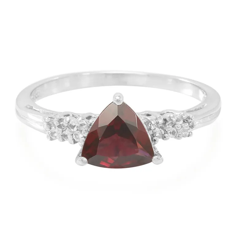 Gönnen Sie sich den Glanz Indiens mit diesem raffinierten Rajasthan Rhodolith Ring. Dieses elegante Schmuckstück aus 925er Sterlingsilber wird von einem Rhodolithen mit einem Gewicht von 1 Karat im Trillant-Schliff (ca. 6,5 mm) dominiert. Verziert mit vierzehn funkelnden brasilianischen weißen Topasen im Brillantschliff von insgesamt 0,076 ct, die jeweils etwa 1 mm groß sind, besticht dieser Ring durch seine Brillanz. Das Gesamtgewicht der Edelsteine beläuft sich auf beachtliche 1,076ct. Mit den Maßen 23×20 mm ist dieser Ring ein Zeugnis feiner Handwerkskunst. Er ist vielseitig einsetzbar und passt perfekt zu Ihrer Bürokleidung oder zu einem Abendkleid für besondere Anlässe.