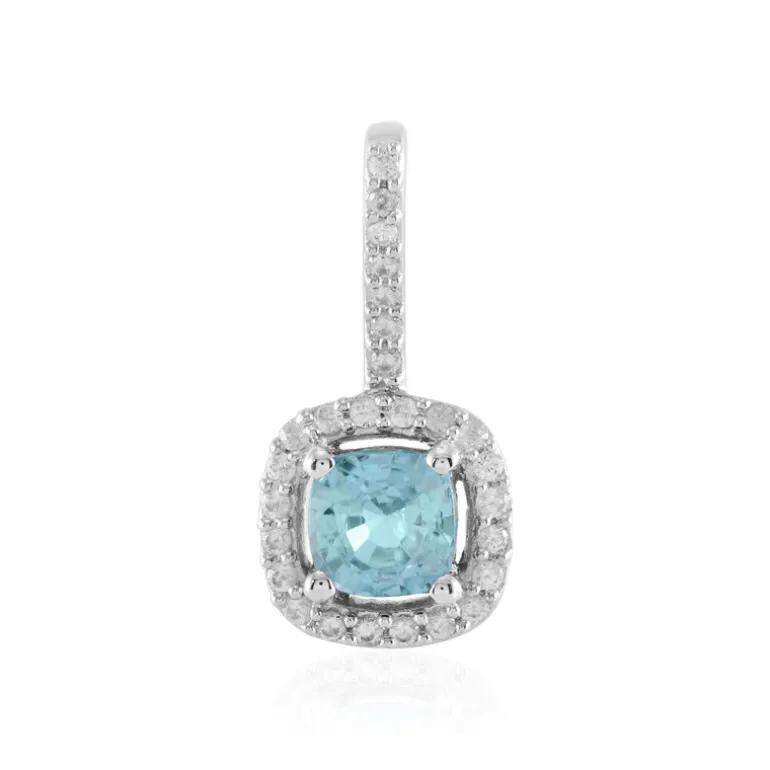 Lassen Sie sich von den schimmernden Farben dieses zierlichen Anhängers verzaubern. Er zeigt einen ruhigen Ratanakiri-Zirkon im Antik-Brillant-Kissenschliff, eingebettet in einen glitzernden Halo aus Zirkonen im Rundschliff. Die platinierte Fassung aus 925er Sterlingsilber unterstreicht die eisigen Blautöne und macht ihn zu einem zeitlosen Schmuckstück. Dieser Anhänger eignet sich sowohl für den eleganten Alltag als auch für besondere Anlässe. Er wertet ein legeres Outfit auf oder verleiht einem Abendkleid einen Hauch von Eleganz.