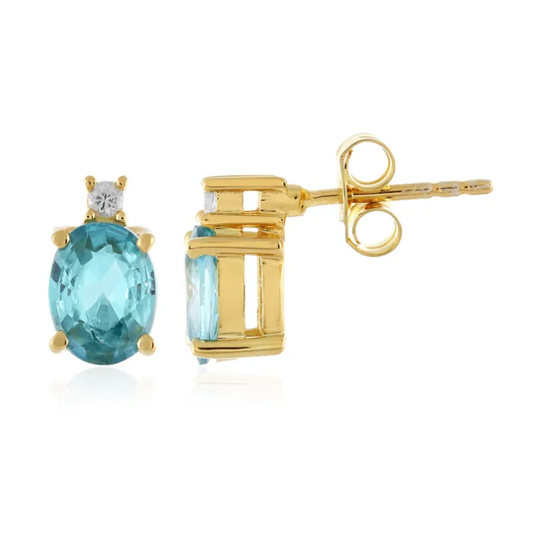 Diese Ohrringe aus vergoldetem 925er Sterlingsilber mit 2,74 Karat Zirkonen im Ovalschliff aus kambodschanischem Ratanakiri-Silber sind ein echter Blickfang. Die subtile Brillanz der Zirkone im Rundschliff von 0,099 Karat sorgt für ein zusätzliches Funkeln. Mit einem Gesamtgewicht von 2,84 ct verleihen diese Ohrringe sowohl dem Alltag als auch besonderen Anlässen einen exquisiten Touch. Der bezaubernde blaue Farbton, umrahmt von goldenen Tönen, eignet sich perfekt für die Akzentuierung von Outfits in neutralen oder pastellfarbenen Tönen.
