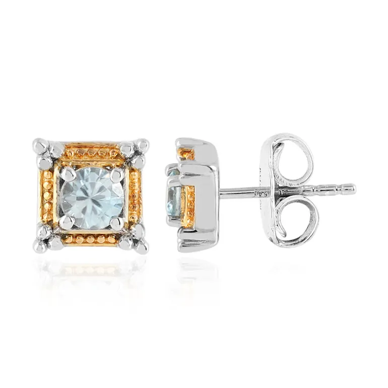 Entdecken Sie die Faszination unserer schicken Ratanakiri Zirkon Ohrringe, ein Zeugnis zeitloser Schönheit. Diese Ohrringe aus platiniertem 925er Sterlingsilber sind mit zwei kambodschanischen Ratanakiri-Zirkonen im Rundschliff mit einem Gesamtgewicht von 0,664 ct verziert, eingebettet in ein klassisches Design mit einem Hauch von modernem Flair. Die hellblauen Farbtöne der Edelsteine werden sorgfältig vom glänzenden Silber umrahmt und bieten ein elegantes Accessoire für den Alltag und besondere Anlässe. Kombinieren Sie diese vielseitigen Ohrringe nahtlos mit Ihrer Berufsgarderobe oder einem lässigen Brunch-Ensemble.