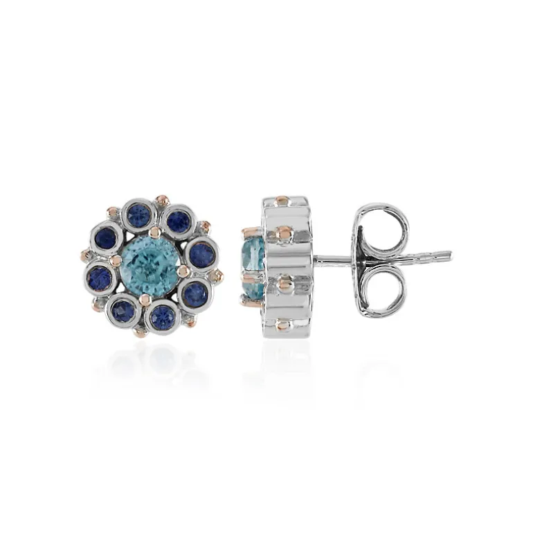 Entdecken Sie die Anziehungskraft dieser exquisiten Ohrringe, die von Dallas Prince entworfen wurden. Der kühle Glanz des kambodschanischen Ratanakiri-Zirkons wird durch das tiefe Blau der Ceylon-Saphire aus Sri Lanka ergänzt. Die rund geschliffenen Edelsteine wiegen zusammen 1,981 Karat und sind sorgfältig in platiniertes 925er Sterlingsilber gefasst, das ihnen ein funkelndes Finish verleiht. Mit einer Größe von 11 mm sind sie ein subtiler, aber auffälliger Schmuck für jedes Ensemble. Diese Ohrstecker können als raffinierter Akzent zu einem professionellen Outfit dienen oder der Abendgarderobe einen Hauch von Eleganz verleihen.