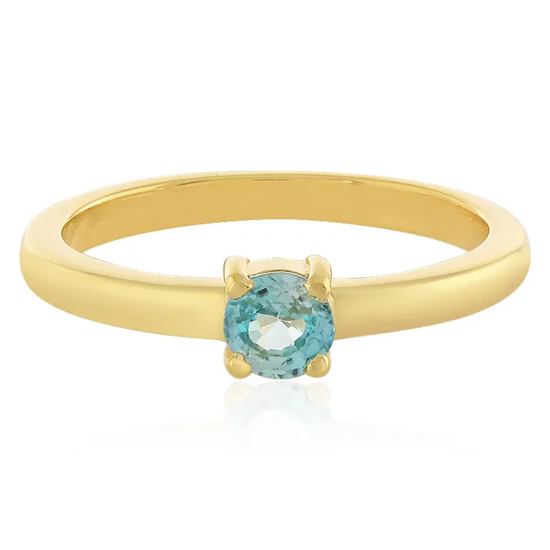 Entdecken Sie die Anziehungskraft der Schlichtheit mit diesem eleganten Ring aus vergoldetem 925er Sterlingsilber, der einen 0,423 Karat großen Zirkon im Rundschliff aus Kambodscha enthält. Der ruhige blaue Farbton des Edelsteins steht in schönem Kontrast zu den warmen Goldtönen des Rings und macht ihn zu einem vielseitigen Schmuckstück, das sowohl zu Tages- als auch zu Abendkleidung passt. Dieser Ring ist ideal, um ein legeres Outfit zu verschönern oder einer formellen Kleidung einen Hauch von Raffinesse zu verleihen und wird Sie mit Sicherheit in seinen Bann ziehen.