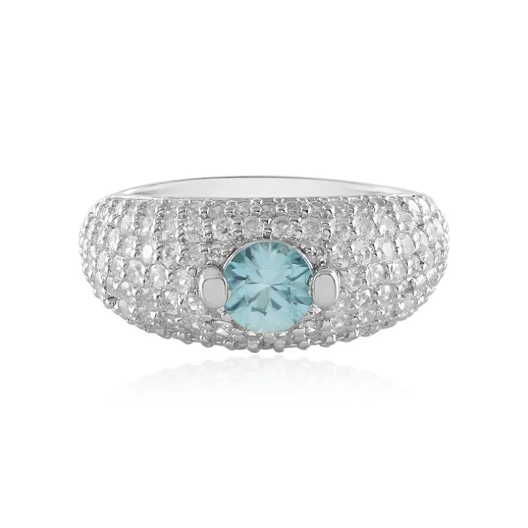 Entdecken Sie die Faszination dieses Rings aus platiniertem 925er Sterlingsilber mit einem atemberaubenden Ratanakiri-Zirkon von 0,81 Karat im Rundschliff aus Kambodscha. Umgeben von 114 funkelnden Zirkonen aus Tansania mit einem Gesamtgewicht von 1,634 ct, besticht dieser Ring durch sein schillerndes Design. Das ruhige Blau des zentralen Edelsteins wird durch den eisigen Schimmer der Akzentsteine ergänzt und macht ihn zu einer perfekten Ergänzung für formelle Anlässe oder einen eleganten Abend. Dieser Ring sorgt für Gesprächsstoff und verleiht jedem Ensemble einen Hauch von Raffinesse.
