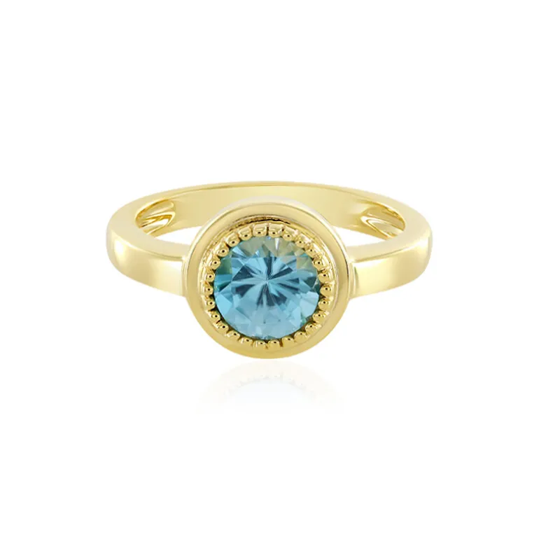 Entdecken Sie die Faszination dieses Rings aus vergoldetem 925er Sterlingsilber mit einem fesselnden Ratanakiri Zirkon von 0,945 Karat im Rundschliff aus Kambodscha, der etwa 6 mm groß ist. Die schimmernde Silhouette wird durch den auffälligen goldenen Farbton und das leuchtend blaue Funkeln des zentralen Edelsteins hervorgehoben. Dieses Schmuckstück ist ideal, um dem Alltag einen Hauch von Eleganz zu verleihen, und eignet sich sowohl für einen legeren Brunch als auch für formelle Abendveranstaltungen. Kombinieren Sie es mit einem hellen Ensemble, damit der blaue Zirkon richtig zur Geltung kommt.