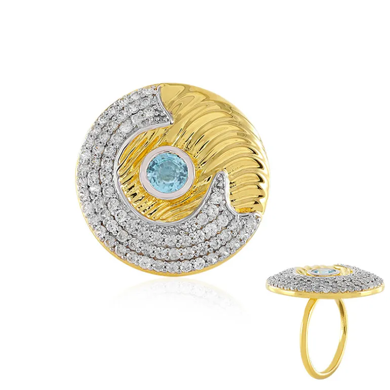 Entdecken Sie die Pracht dieses atemberaubenden Rings aus der Monosono-Kollektion mit einem brillanten Zirkon von 0,964 Karat aus kambodschanischem Ratanakiri, umrahmt von einem Wirbel aus 71 funkelnden Zirkonen in glänzendem vergoldetem 925er Sterlingsilber. Mit einem Gesamtkaratgewicht von 2,468 ct verkörpert dieses Stück moderne Eleganz. Diese künstlerische Kreation ist perfekt, um jedes Outfit zu verschönern und eignet sich ideal für Feierlichkeiten und besondere Abende.