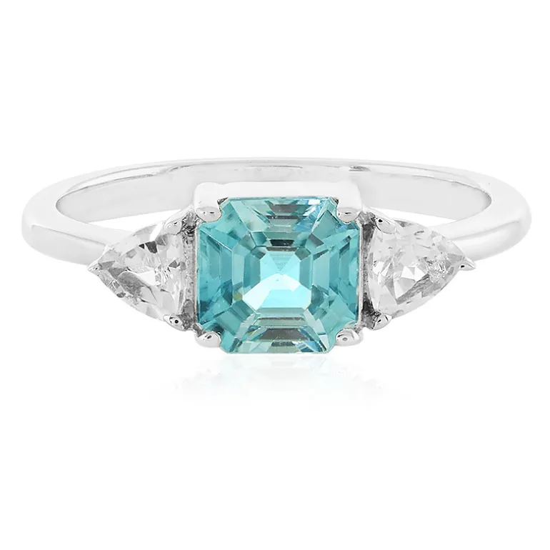 Tauchen Sie ein in die verführerische aquatische Ausstrahlung dieses schicken Ratanakiri Zirkon Rings, gekrönt von einem 1,945ct Edelstein aus den berühmten Minen von Kambodscha. Flankiert von zwei glitzernden Madagaskar-Weißtopasen im Trillant-Schliff mit einem Gesamtgewicht von 0,52 ct. präsentiert sich dieser Ring aus 925er Sterlingsilber mit einem Zirkon im Oktagon-Aster-Schliff, der moderne Eleganz ausstrahlt. Mit einem Gesamtgewicht von 2,465 ct, eingefasst in ein schlankes Band mit einem Gewicht von ca. 2,35 g, misst das einzigartige Design 23 x 19 mm. Dieser Ring ist ein vielseitiges Schmuckstück, das Ihrer Geschäftskleidung einen Hauch von Eleganz verleiht oder auf einer Cocktailparty für Gesprächsstoff sorgt.