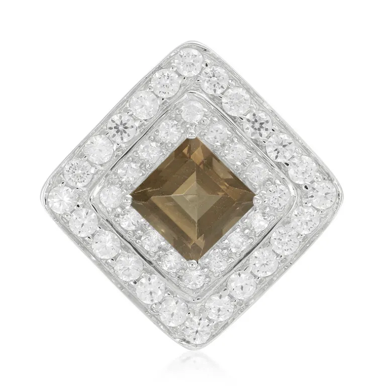 Dieser bezaubernde Anhänger präsentiert einen 2,39 ct brasilianischen Rauchquarz im klassischen Carré-Schliff mit einer Größe von ca. 8 mm, gefasst in hochwertigem 925er Sterlingsilber für zeitlose Eleganz. 24 runde Zirkone im Brillantschliff aus Kambodscha mit einem Gesamtgewicht von 2,312 ct und 16 weitere Zirkone mit einem Gesamtgewicht von 0,804 ct rahmen den zentralen Edelstein ein und ergeben zusammen 5,506 ct. Dieser Anhänger mit den Maßen 27 x 26 mm glitzert in einer harmonischen Symphonie und ist ein subtiles und doch kühnes Statement der Raffinesse für jedes Outfit. Er eignet sich perfekt für Abendveranstaltungen oder als schicke Ergänzung Ihres Alltagsstils und wird mühelos zu einem geschätzten Stück in Ihrer Sammlung.