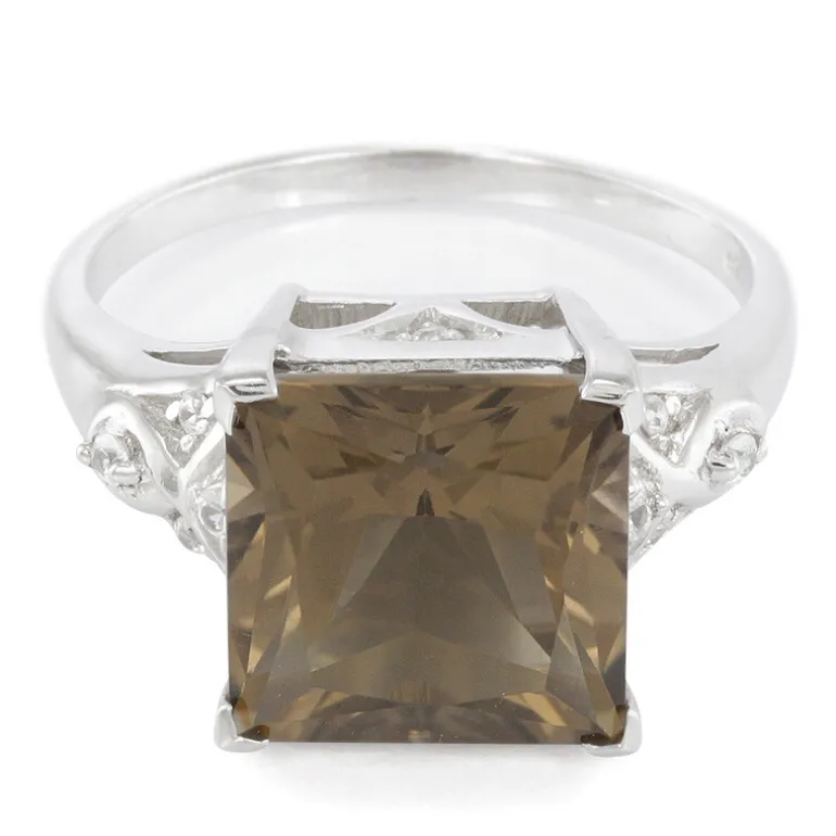 Dieser atemberaubende Ring präsentiert einen prächtigen 4,9-karätigen Rauchquarz aus Brasilien mit quadratischem Prinzess-Schliff, der etwa 11 mm misst. Er ist mit 10 funkelnden Zirkonen aus Kambodscha von insgesamt 0,161 Karat verziert und wurde aus hochwertigem 925er Sterlingsilber gefertigt, das etwa 2,88 g wiegt. Sein einzigartiges Design und die neutralen Farbtöne machen ihn vielseitig tragbar und passen sowohl zu legerer als auch zu formeller Kleidung. Es ist eine elegante Ergänzung für jede Schmucksammlung und perfekt für alle, die einen Hauch von dezentem Luxus zu schätzen wissen.