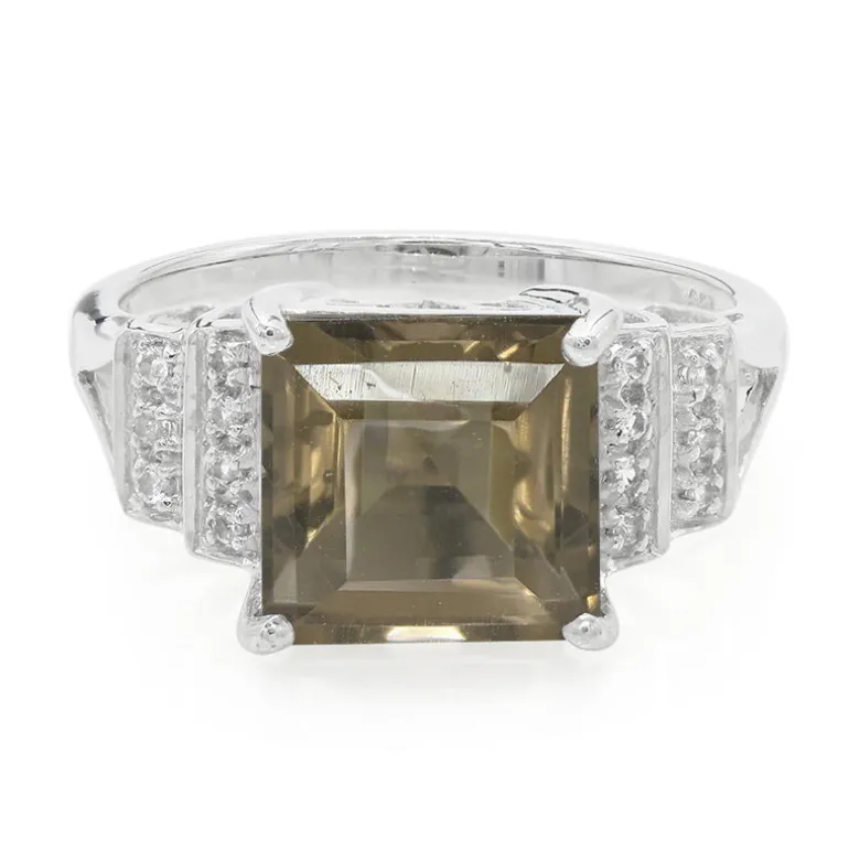 Wir präsentieren einen fesselnden Rauchquarz-Silberring mit einem atemberaubenden Rauchquarz im Carré-Schliff von 3,12 Karat aus Brasilien. Umgeben von 14 weißen Topasen im Brillantschliff, bietet dieses Stück aus 925er Sterlingsilber einen raffinierten Touch. Er eignet sich sowohl für legere als auch für formelle Anlässe und verleiht jedem Outfit Eleganz. Kombinieren Sie ihn mit erdfarbenen Ensembles für einen eleganten, koordinierten Look.