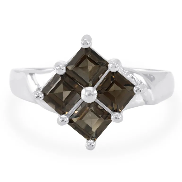 Zeitlose Eleganz mit diesem atemberaubenden Rauchquarz-Silberring. Mit seinen vier brasilianischen Rauchquarz-Steinen im Carré-Schliff strahlt der Ring Raffinesse aus. Er ist aus 925er Sterlingsilber gefertigt und wiegt etwa 2,32 g. Dieser Ring ist perfekt, um legere oder formelle Kleidung aufzuwerten und verleiht jedem Anlass einen Hauch von Klasse. Ideal für abendliche Soireen oder einen schicken Tageslook.