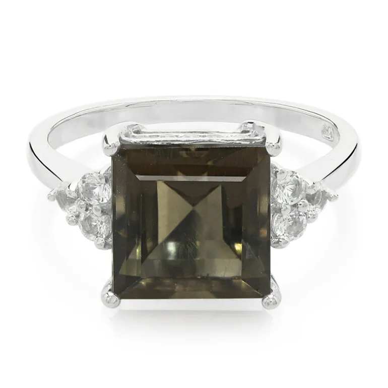 Entdecken Sie die Eleganz dieses atemberaubenden Rauchquarzrings mit einem Edelstein im Carré-Schliff von 2,92 Karat aus Brasilien. Akzentuiert von 16 weißen Topasen, strahlt dieses Stück Raffinesse aus. Der Ring aus 925er Sterlingsilber eignet sich perfekt für formelle Anlässe oder als raffiniertes Accessoire für den Alltag. Kombinieren Sie ihn mit einem eleganten Outfit, um einen bleibenden Eindruck zu hinterlassen.