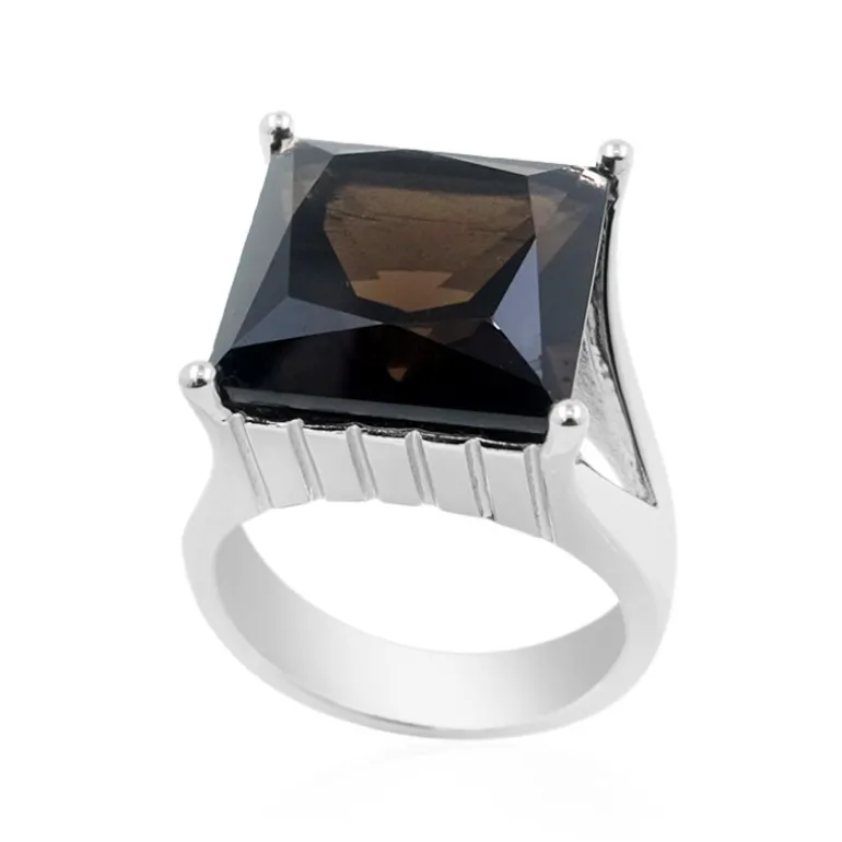 Dieser beeindruckende Ring mit einem brasilianischen Rauchquarz von 10,53 Karat ist mit einem eleganten 925er Sterlingsilberband ausgestattet. Der quadratische Prinzessschliff des Edelsteins fängt das Licht perfekt ein und verstärkt die Tiefe seines glühenden Farbtons. Dieses unverzichtbare Schmuckstück ist sowohl für formelle als auch für legere Anlässe geeignet und verleiht jedem Look einen Hauch von Eleganz. Sein beträchtliches Gewicht und sein kühnes Design sind ein Zeichen für raffinierten Geschmack und Eleganz.