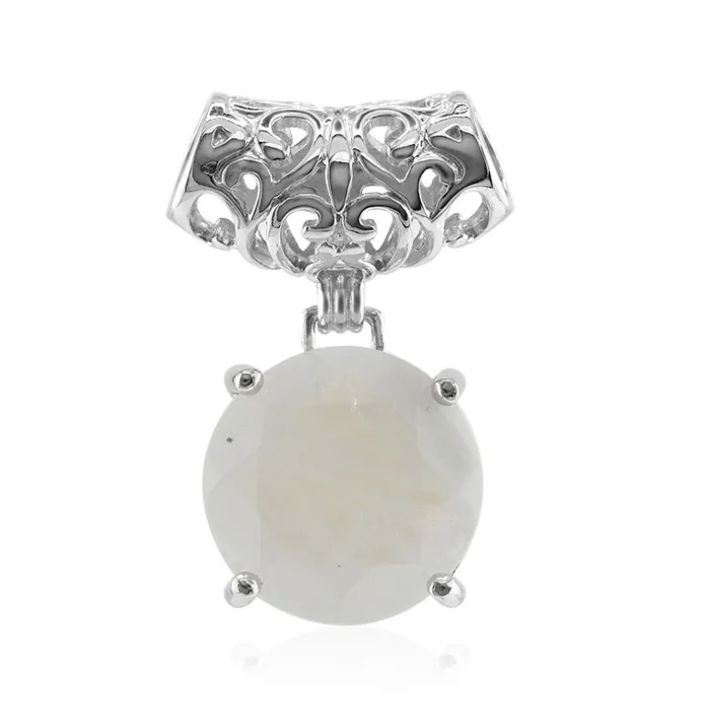 Entdecken Sie den himmlischen Charme dieses Anhängers aus Sterlingsilber mit einem glänzenden Regenbogenmondstein im Rundschliff von 7,64 Karat aus Indien. Der Anhänger präsentiert einen mystischen Mondstein, der für seine Adulareszenz bekannt ist. Er ist in ca. 2,74 g hochwertigem 925er Sterlingsilber gefasst und hängt anmutig an einer verschnörkelten Öse. Das Schmuckstück ist perfekt geeignet, um sowohl der Tages- als auch der Abendgarderobe einen Hauch von Eleganz zu verleihen. Ideal für die moderne Romantikerin ist es eine vielseitige Ergänzung für jede Schmucksammlung.