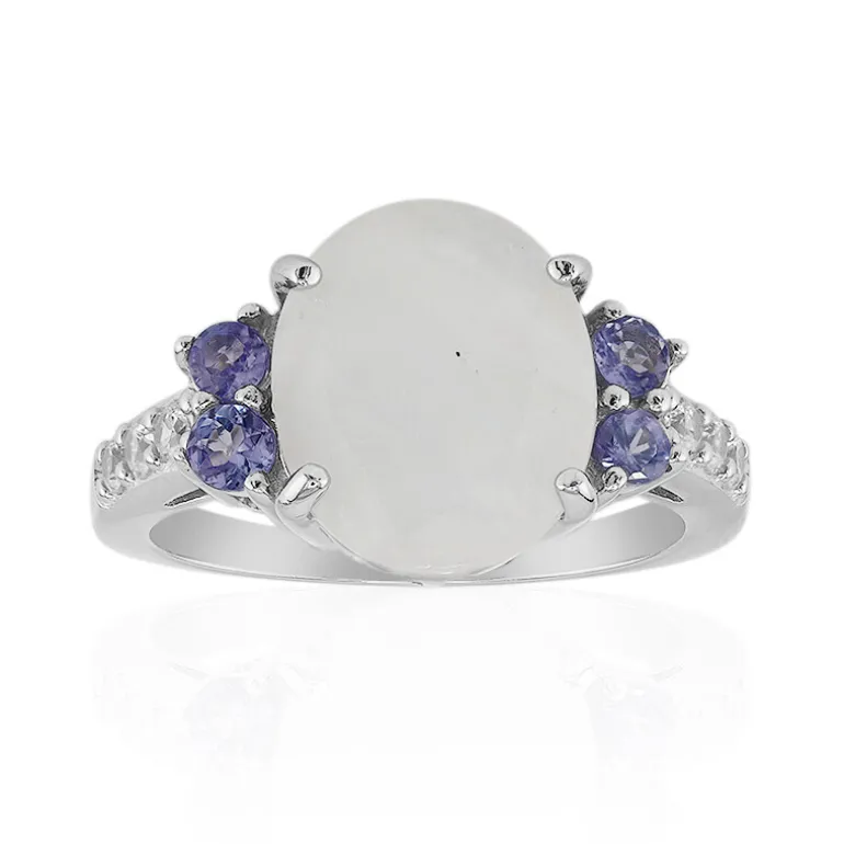Indischer Regenbogen Mondstein & Tansanit Silber Ring, 4.71ct