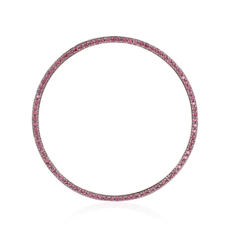 Entdecken Sie die Faszination der MONOSONO COLLECTION mit diesem prächtigen, kreisförmigen Anhänger, der mit 90 brasilianischen Rhodolithen im Rundschliff mit einem Gesamtgewicht von 1,458 Karat schimmert, die in poliertem 925er Sterlingsilber mit einem Gewicht von ca. 4,94 Gramm gefasst sind. Die leuchtenden Rosatöne bilden eine fesselnde visuelle Symphonie und machen ihn zu einem vielseitigen Accessoire, das sich sowohl für legere als auch für formelle Anlässe eignet. Dieser Anhänger strahlt Glanz und Raffinesse aus und sorgt bei jeder Veranstaltung für Gesprächsstoff.