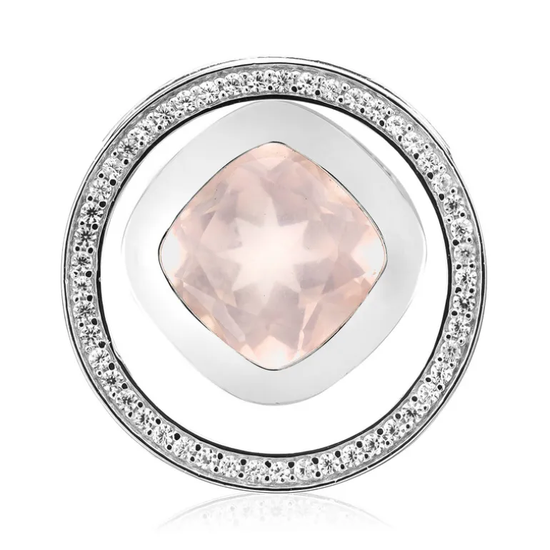 Entdecken Sie die Eleganz dieses brasilianischen Rosenquarz-Anhängers mit einem antiken Edelstein im Kissenschliff von 4,028 Karat. Umgeben von 49 funkelnden Zirkonen aus Tansania, gefasst in glänzendem 925er Sterlingsilber, verkörpert dieses Stück Raffinesse. Perfekt für formelle Anlässe oder als charmanter Begleiter im Alltag. Kombinieren Sie es mit einer Silberkette und sanften Farbtönen für ein elegantes Ensemble.