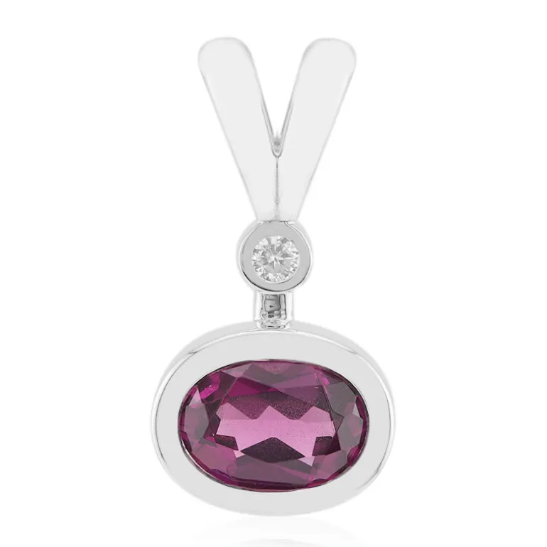 Entdecken Sie die Eleganz dieses exquisiten Anhängers mit einem Mosambik-Roshoit-Granat im perfekten Ovalschliff. Der lebhafte Granat wird durch einen tansanischen Zirkon im Brillantschliff ergänzt, der in poliertem 925er Sterlingsilber gefasst ist. Dieses Schmuckstück eignet sich sowohl für legere als auch für formelle Anlässe. Es passt hervorragend zu Abendkleidern oder einer schicken Bluse und verleiht jedem Ensemble einen Hauch von Raffinesse.