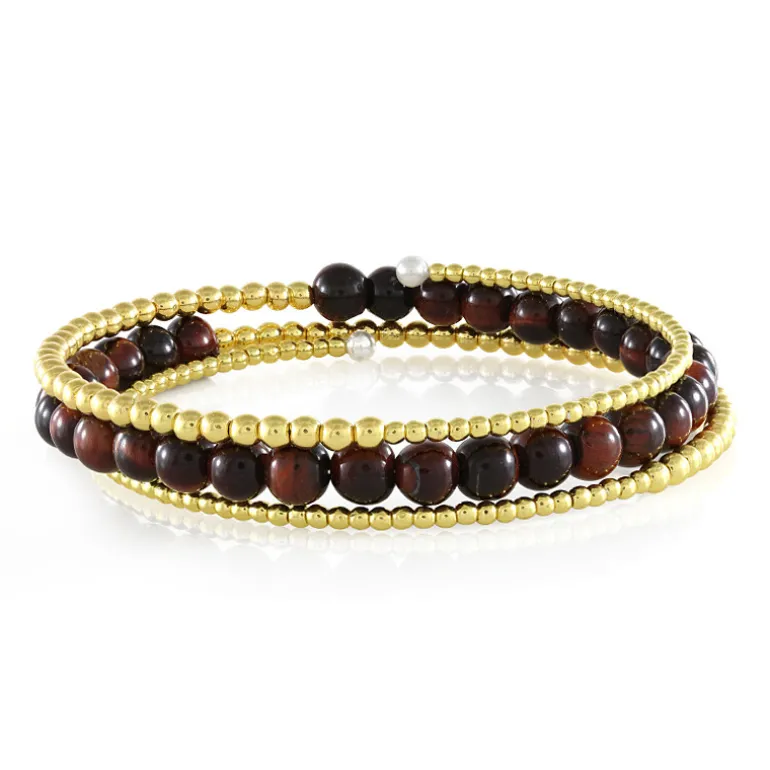 Rotes Tigerauge Stahlarmreif mit goldenem Hämatit
