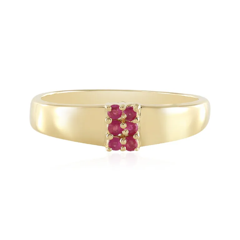Dieser exquisite Ring zeigt sechs glänzende Rubine im Rundschliff aus Thailand, eingebettet in ein schlankes Band aus 925er Sterlingsilber mit einer luxuriösen Goldauflage. Die 0,099ct Rubine sind kunstvoll angeordnet und erzeugen bei jeder Bewegung ein faszinierendes Funkeln. Ideal, um Ihrer Abendgarderobe einen Hauch von Eleganz zu verleihen oder Ihre Alltagsgarderobe mit einem Hauch von Farbe zu ergänzen. Dieser Rubinring ist ein begehrtes Accessoire in jeder Schmucksammlung.