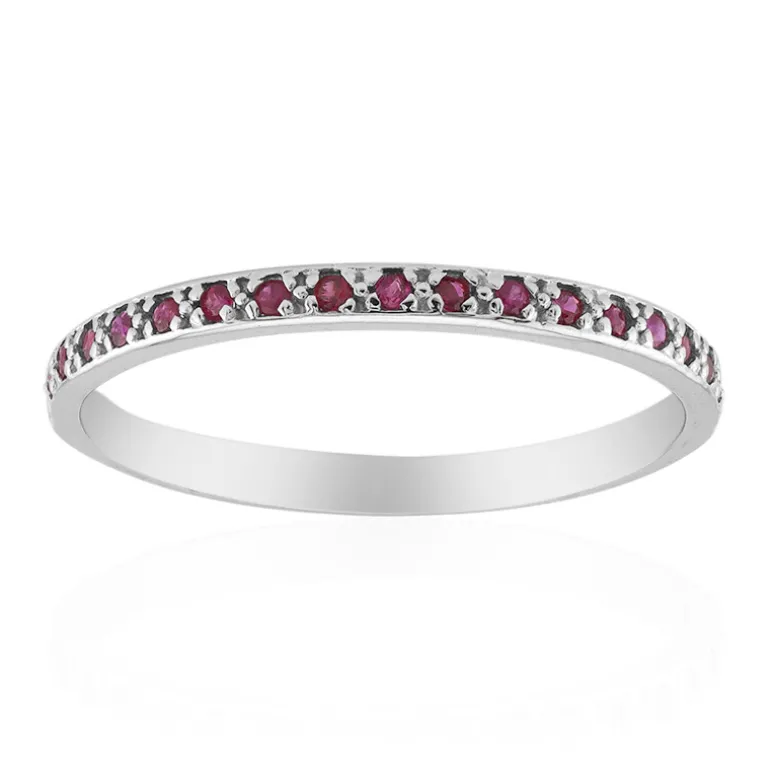 Dieser atemberaubende Ring besteht aus 19 leuchtenden indischen Rubinen im Rundschliff, die in glänzendes platiniertes 925er Sterlingsilber gefasst sind. Das zarte Design ist elegant und raffiniert und bietet ein subtiles Funkeln, das ihn perfekt für jede Gelegenheit macht. Dieser Ring eignet sich sowohl für legere als auch für formelle Anlässe und verleiht Ihrem Ensemble einen Hauch von Raffinesse. Kombinieren Sie ihn mit einem eleganten Abendkleid oder Ihrem Lieblingsoutfit für den Tag, um einen zeitlosen Look zu erhalten.