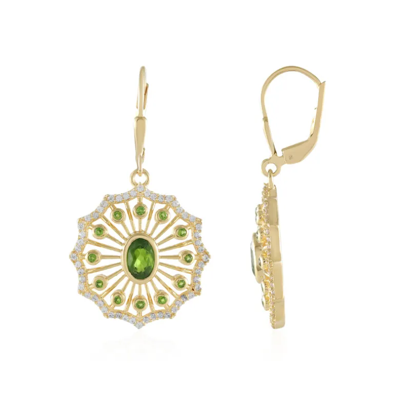 Schicke russische Diopsid-Ohrringe vergoldet