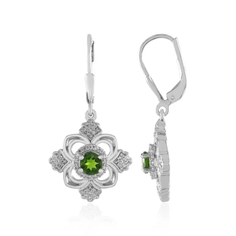 Entdecken Sie die Eleganz dieser exquisiten Ohrringe mit lebhaftem russischem Diopsid, der durch funkelnde Zirkon-Akzente aus Kambodscha perfekt ergänzt wird. Gefertigt aus glänzendem platiniertem 925er Sterlingsilber, verleihen diese Ohrringe einen Hauch von Raffinesse. Ideal für besondere Anlässe oder um Ihrem Alltagsoutfit Glanz zu verleihen. Erhöhen Sie Ihren Stil mit diesem zeitlosen Schmuckstück.