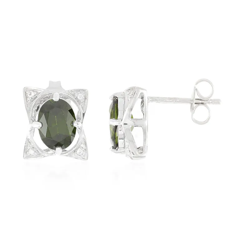 Diese bezaubernden Ohrstecker sind mit auffälligen russischen Diopsid-Steinen besetzt, die wunderschön in glänzendes platiniertes Sterlingsilber gefasst sind. Akzentuiert mit kambodschanischen Zirkonen für zusätzliches Funkeln, eignen sie sich sowohl für elegante Abendgarderobe als auch für raffinierte Tageslooks. Mit ihrem einzigartigen Design werten diese Ohrringe jedes Outfit mit einem Hauch von zeitlosem Charme auf.