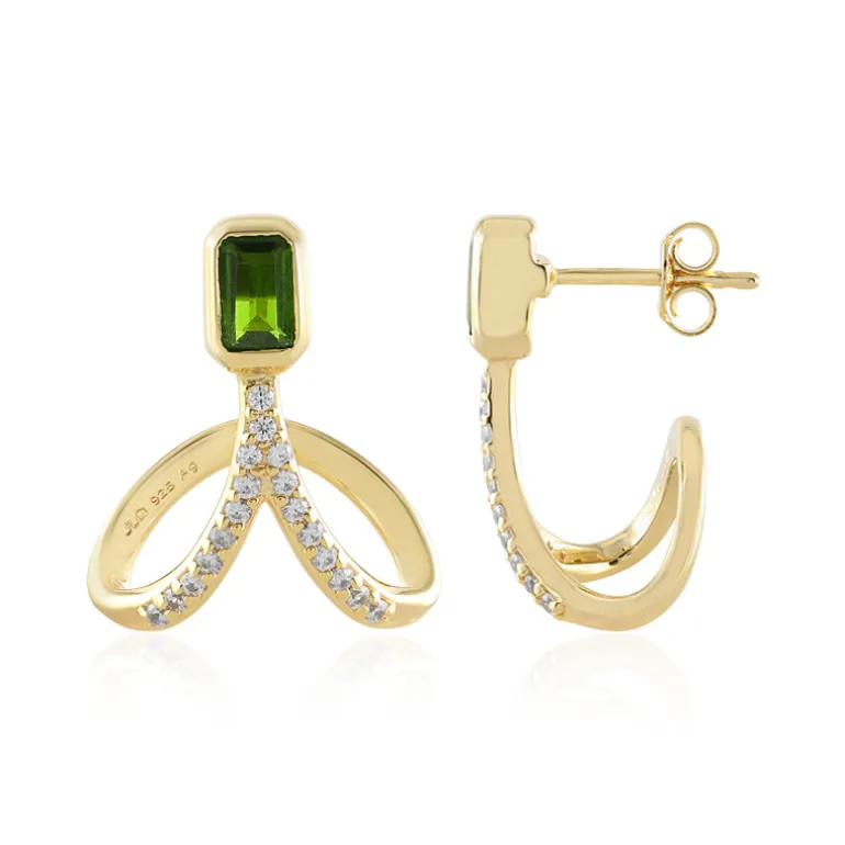 Entdecken Sie die Faszination dieser vergoldeten Ohrringe aus 925er Sterlingsilber, die jeweils einen zauberhaften russischen Diopsid präsentieren. Mit einem Gesamtgewicht von 1,52 ct sind diese Ohrringe mit 0,986 ct Diopsiden im Oktagon-Schliff besetzt, die durch kambodschanische Zirkon-Akzente ergänzt werden und für einen Hauch von Funkeln sorgen. Sie eignen sich sowohl für legere als auch für formelle Outfits und verleihen jedem Ensemble einen raffinierten Farbakzent.